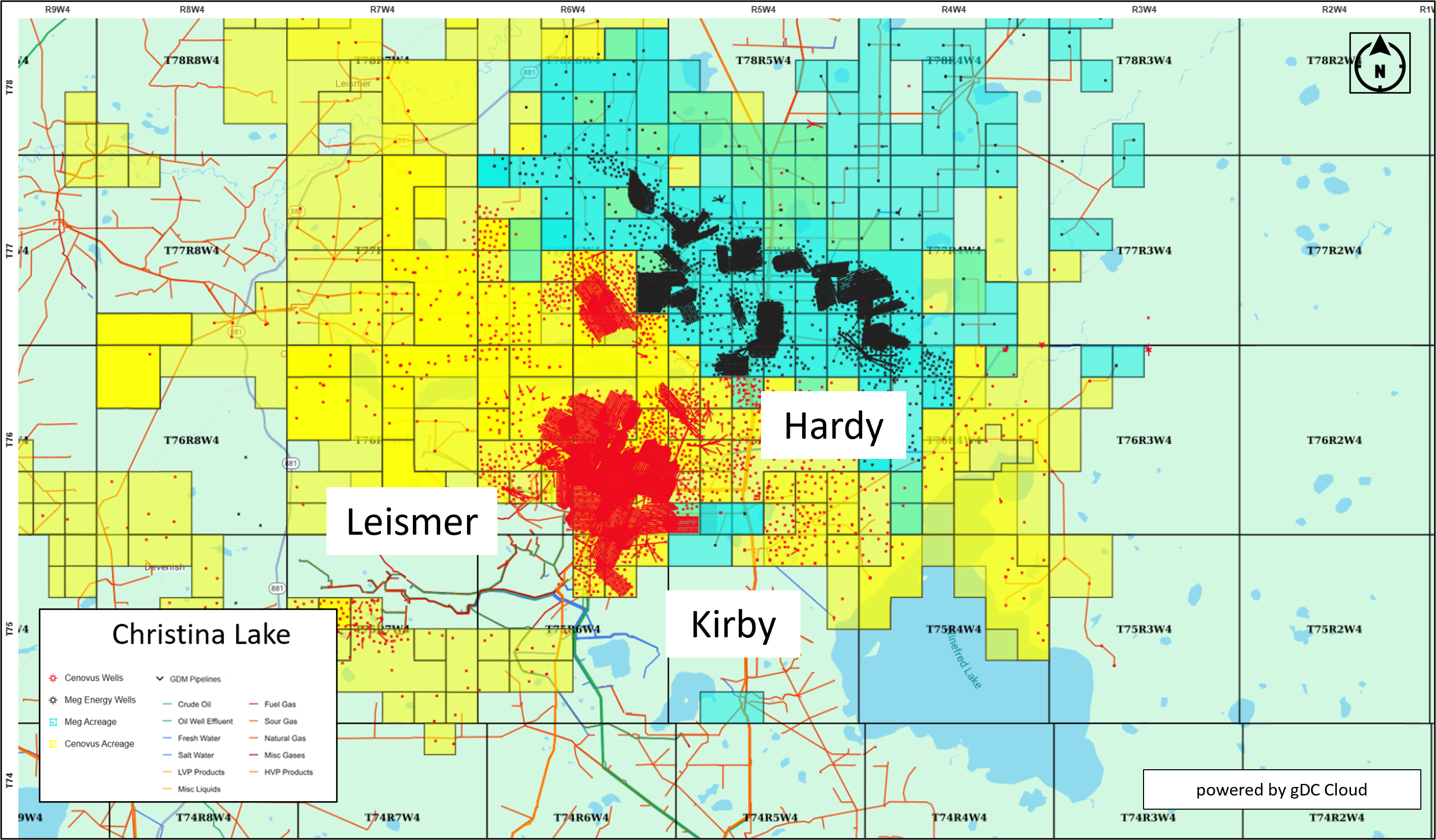 Cenovus has existing resources at Hardy, Winnifred Lake and Leismer located on the other side of the acquired acreage.